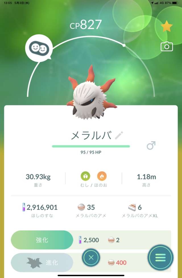 メラルバとウルガモスの図鑑を埋める。メラルバは、2kmタマゴ/5kmタマゴ/10kmタマゴで出現する。
