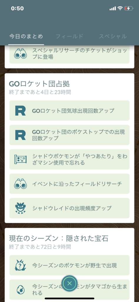 もしかしてGOロケット団イベントお約束のふしぎなパーツのフィールドリサーチが出てきてカリキリのリサーチが減ったりしますかねー?念のため今日のうちにできるだけ頑張っておこうかな。