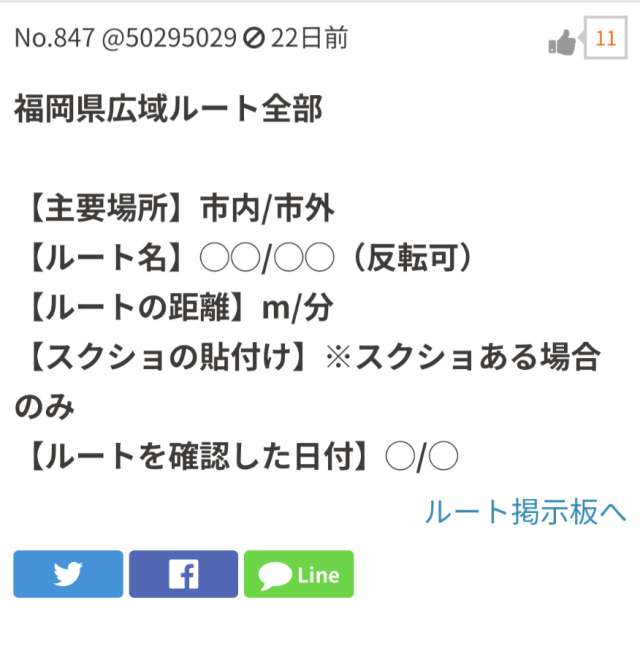 ルートに関する情報を共有するための掲示板です。