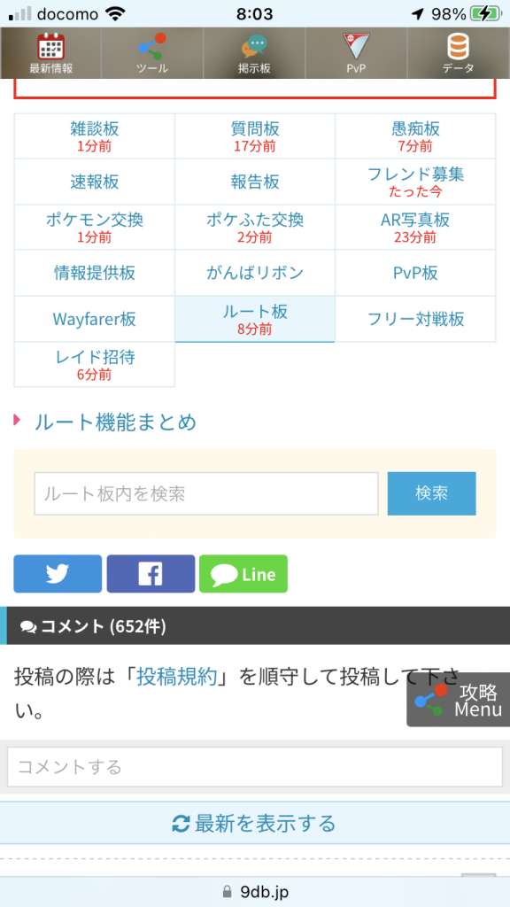 ルートに関する情報を共有するための掲示板です。