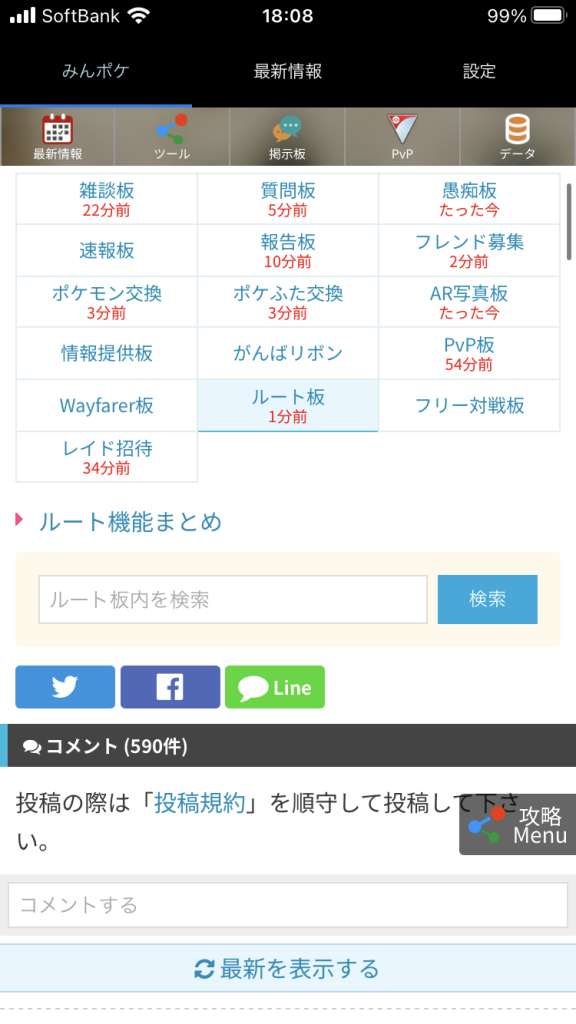 ルートに関する情報を共有するための掲示板です。