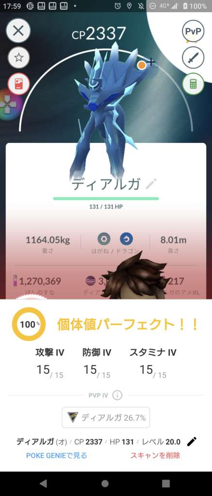 ・ダイヤモンドを選択:レイドで捕まえるすべてのディアルガ(オリジン)が「ときのほうこう」を覚えている