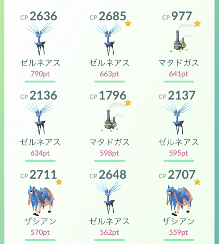 高さの高いゼルネアス、ガラルマタドガス、ザシアンなどのおひろめポイントが高くなっています。