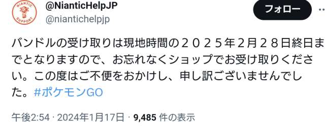 1月のトルネロスレイドで色違いが出なかった不具合の補填として、対象のトレーナーのショップに、レイドパス3枚、リモートレイドパス1枚入り無料ボックスが出ています。