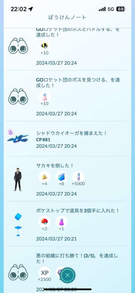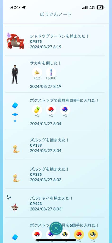 捕まえ忘れてたカイオーガを慌てて捕まえたけど、グラードンに切り替わっちゃってた。