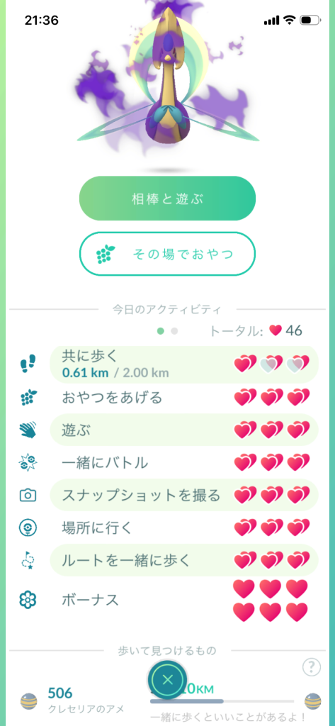 画像には、歩いた時のハートのことしか書いてないじゃんと言われそうですが、英語の原文では、単に相棒ポケモンと追加のハートが獲得できるとしか書かれていません。