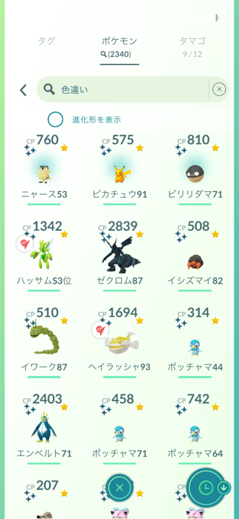 あと"2340匹"の数も見せたいなら別ですが、"色違い&日数0"でスッキリしたスクショ載せた方が良いです。