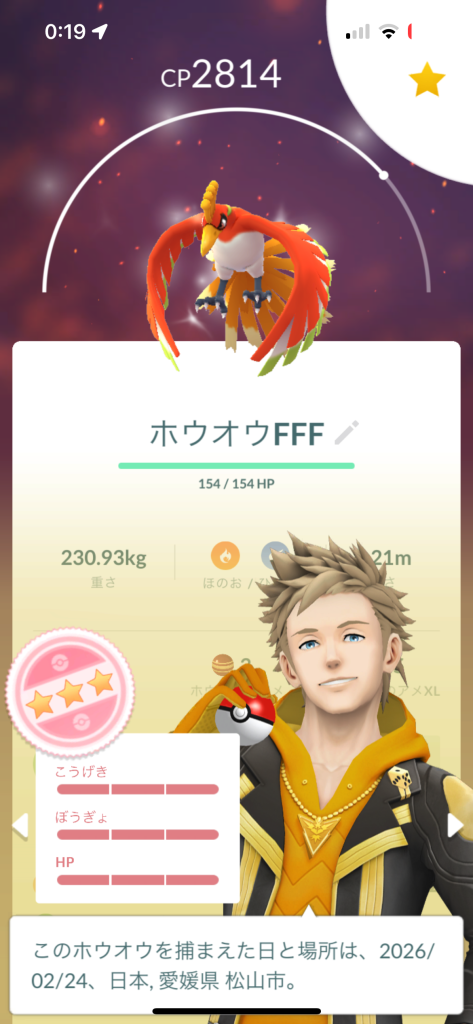 ホウオウ・ルギアはイオンとソフトバンクのジムのみで4戦だけやってホウオウ背景2、ルギア背景1色違い背景無し1だった