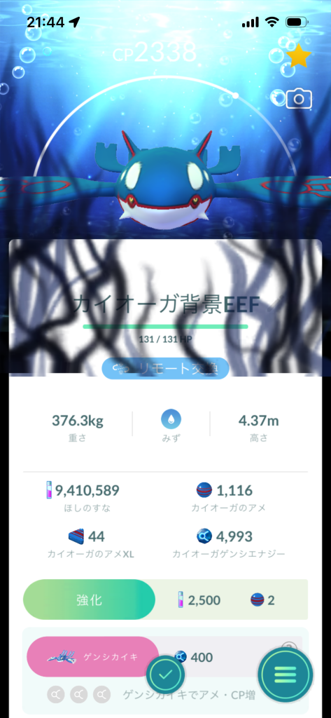 カイオーガ強いわー。お任せ選択で草系3つも入れられて、氷技でワンパン吹っ飛んだ。第2陣まで投入し12匹怪我人の山でやっと倒した。やっぱお任せはダメだね