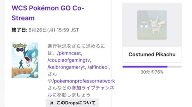 | TwitchでWCS2024のポケモンGO公式ストリーマー配信を30分間視聴する コード適用期限:2024/8/26(月)23:59 |