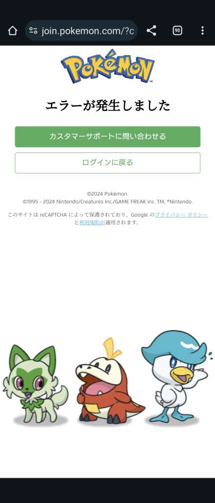 ポケモントレーナークラブアカウントの連携で何度やってもエラー出るわ
