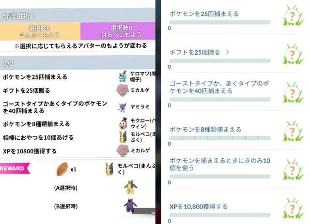 自分はまんぷく選択でこれだったのでまんぷく/はらぺこの選択で分岐ありで間違いなさそうですね。