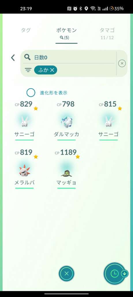 左上の数値:個体値MaxCP (通常時 / 天候ブースト)