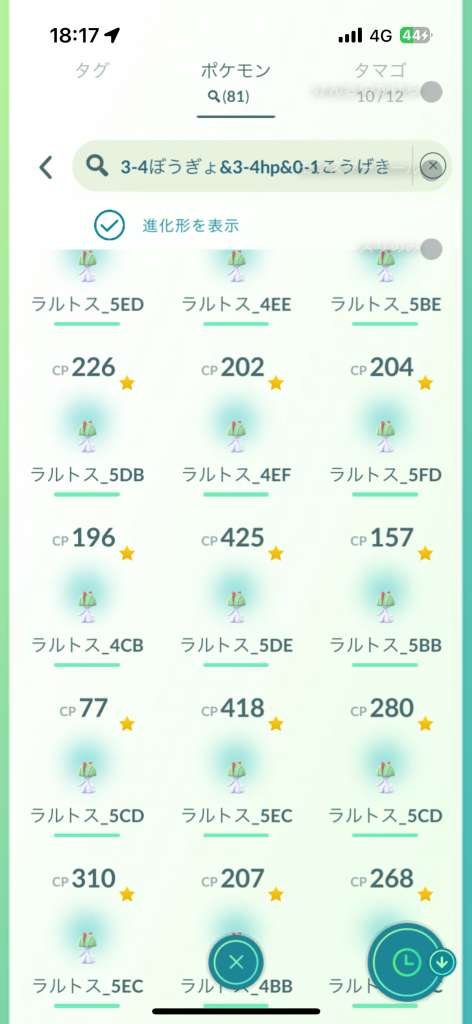個体値検索文字列をお気に入りに登録しておくことで、設定した条件以外のポケモンをワンタップで博士に送れるようになります。