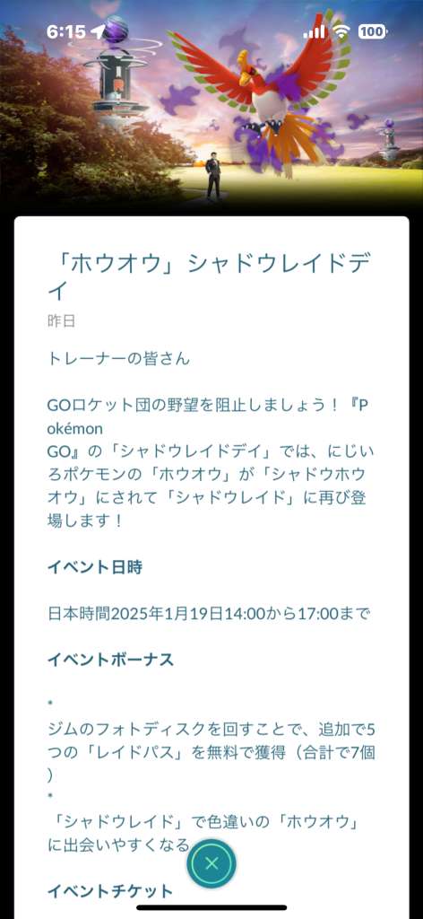「シャドウレイドデイ」イベントでGOロケット団から「ホウオウ」を救い出そう!