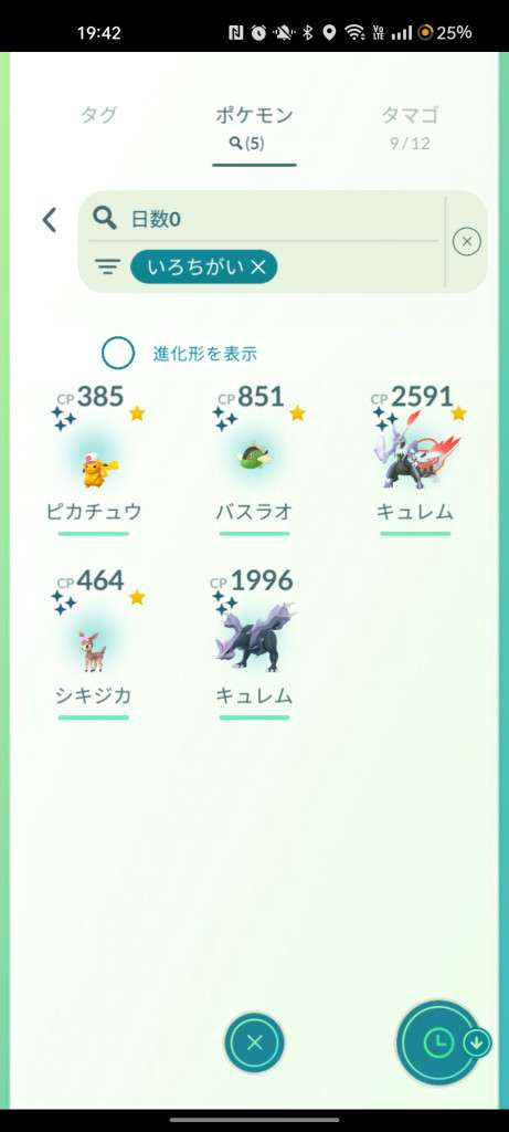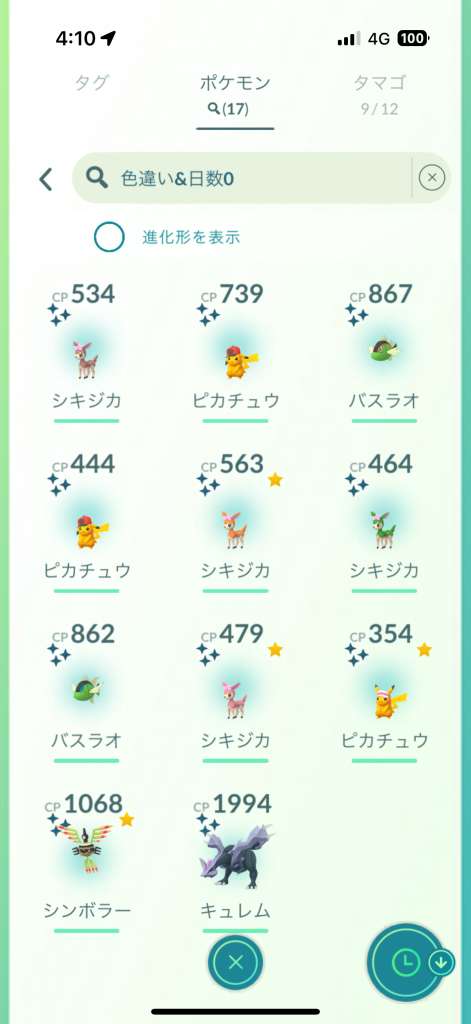 色違い率渋いと思ったが、レイド無視してタスクと野生に集中してシキジカコンプ出来た。