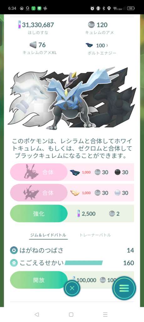 添付画像は以前に捕まえたキュレムですが、このように変わっていました。