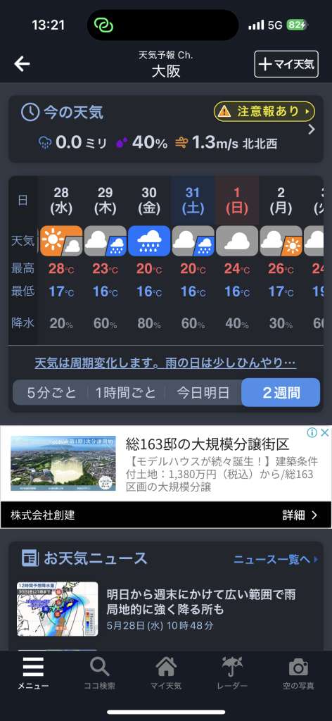 明日からのGofes大阪の期間中は曇りや雨で、