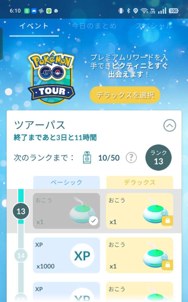 捕獲やレイドなどでツアーポイントを集めてリワードを獲得し、ランクを上げることでリワードやボーナスがもらえる。