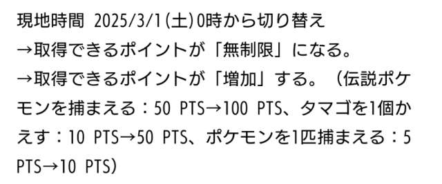 3/1-3/2は獲得ポイント2倍 、1日の獲得上限なし