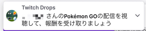 | 2 | TwitchのポケモンGOが参加しているライブ配信を開く ※対象のチャンネルを選択するとメッセージが表示される ![]() |