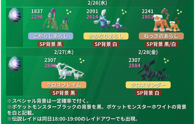 ※伝説レイドは同日18:00-19:00のレイドアワーでも出現。