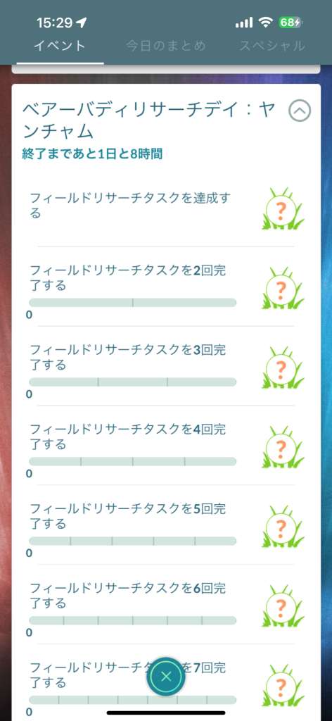 フィールドリサーチタスクを1回完了する ヤンチャム