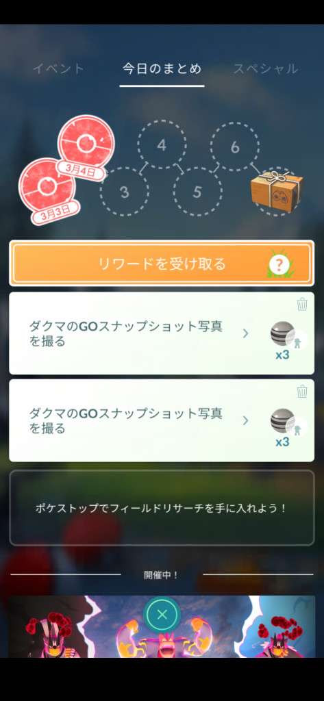 | タスク・リワード受取り期限:2025年3月10日(火)20時? タスククリアボーナス:孵化距離1/4 |
