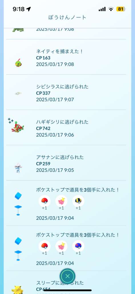 | ポケストップ・ジム10個を回す | ![]() | ハギギシリ |
