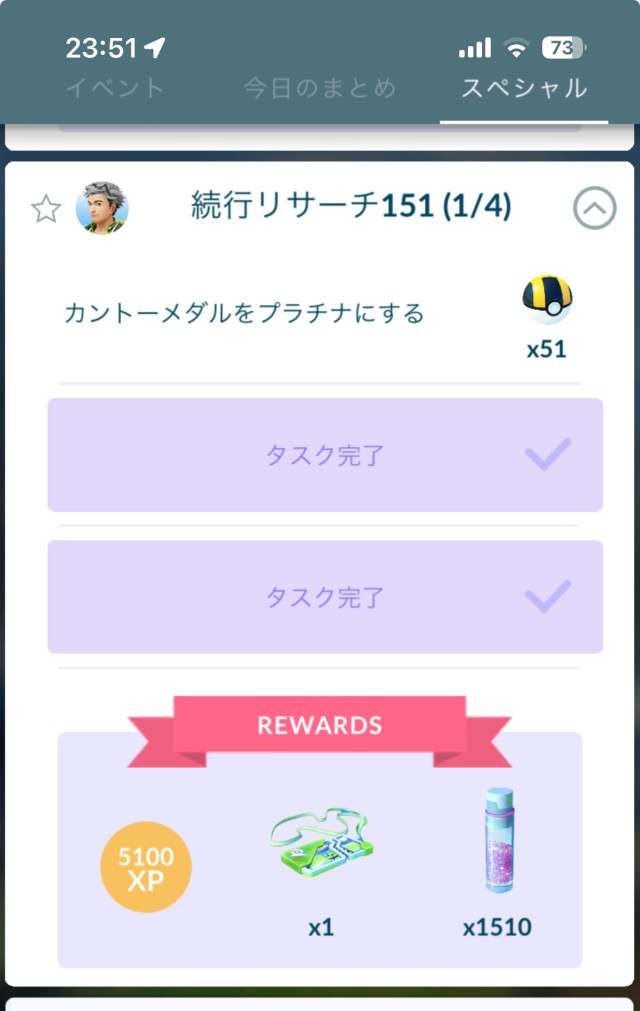 | タスク・リワード受取り期限:2025年4月7日(月)20時 クリア後ボーナス:捕獲時アメ+1、捕獲時アメXL率(TL31以上) |