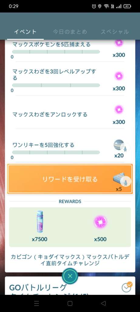 キョダイマックスカビゴン1戦終わって他の人が次のバトルしてるときに黙々と徒歩ボーナス600×2回ためるのはきついかもしれない