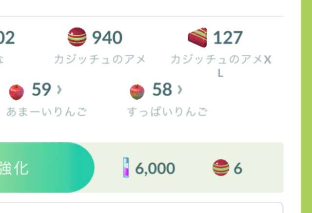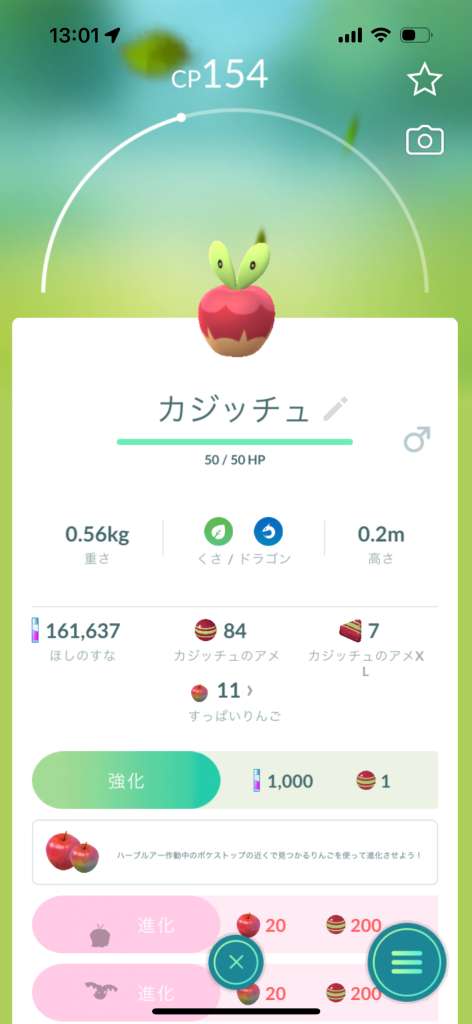 進化にはアメ200個とすっぱいりんごかあまーいりんごが20個必要