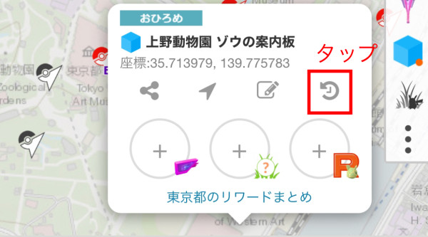 タスクを登録することで、そのポケストップの色が紫色に変わり、確認済みであることがひと目でわかるようになります。