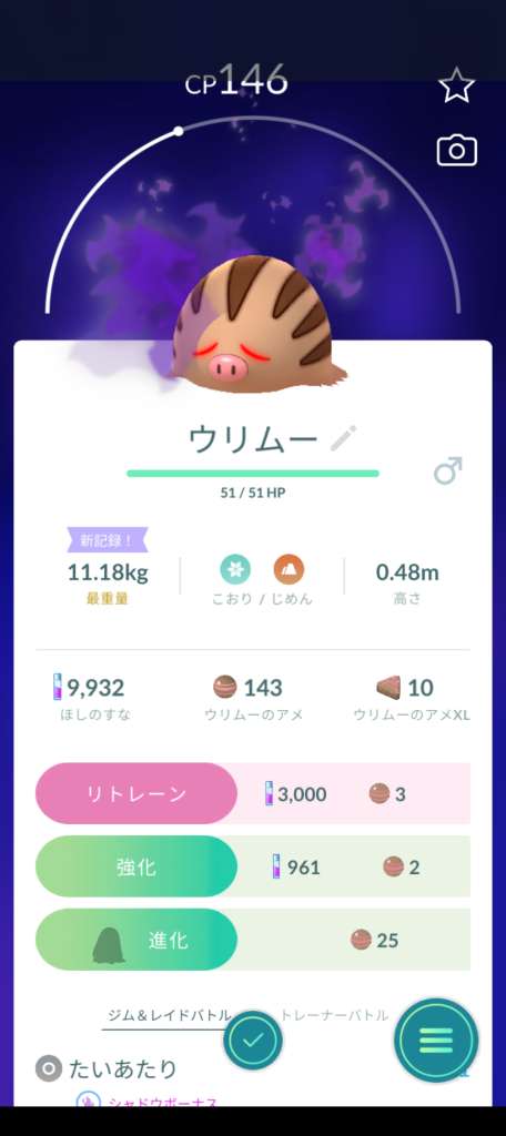 イベント中に捕まえた★1、★3シャドウの最低個体値が0に