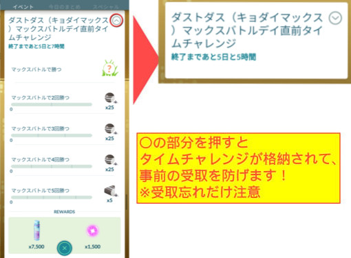 | ※タイムチャレンジのMPは誤受取防止のため閉じておくのがオススメ(記事内ポイント③参照) |