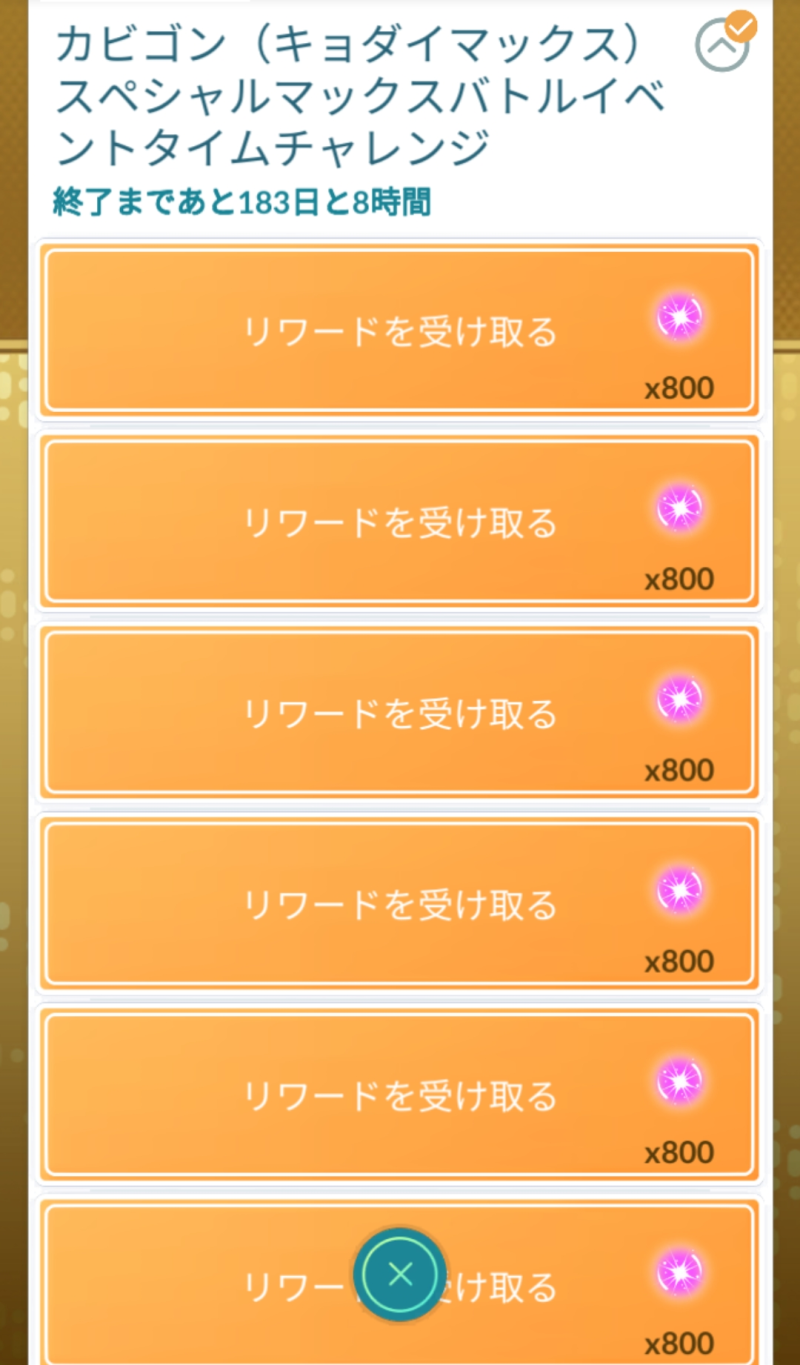 リワードはキョダイマックスカビゴンです。色違率結構高い(?)。私と友達が3台分うちに2匹が色違が出ました。