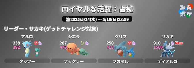 ロイヤルな活躍:占拠イベントのロケット団幹部の手持ちが一部判明しました。これらのポケモンは0時以降入手可能です。アルロ→タッツーシエラ→ナックラークリフ→フカマルロイヤルな活躍:占拠