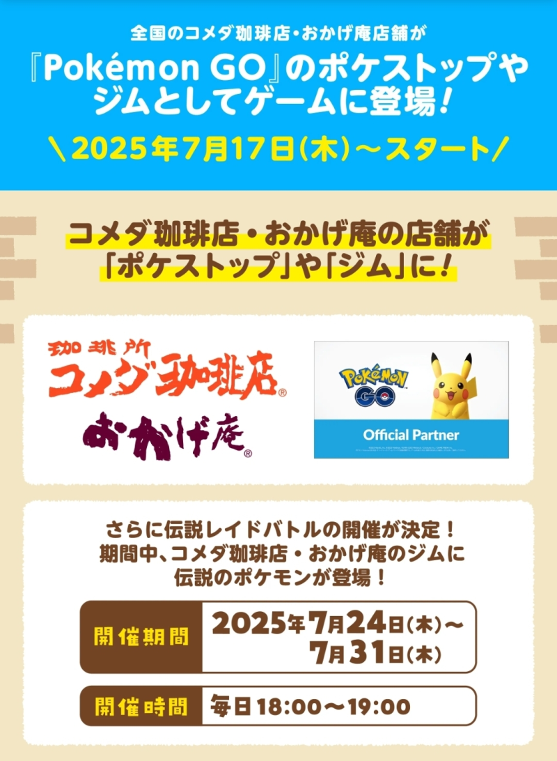 コメダ珈琲店がポケモンGOのオフィシャルパートナーに!