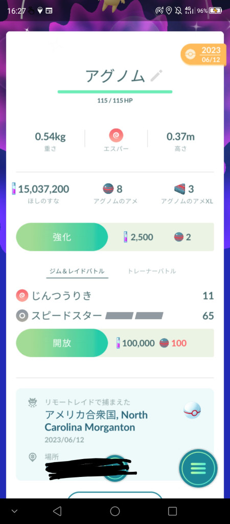 左上の数値:個体値MaxCP (通常時 / 天候ブースト)