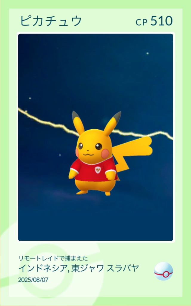 ![]() | ピカチュウ(インドネシア2025)色違い 3.3% |