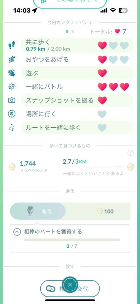 1/4孵化距離 | x2捕獲時アメ | TL31↑確率x2捕獲時アメXL | ![]() ![]() 除く3時間ルアー・おこう | ![]() 特別な進化条件 |