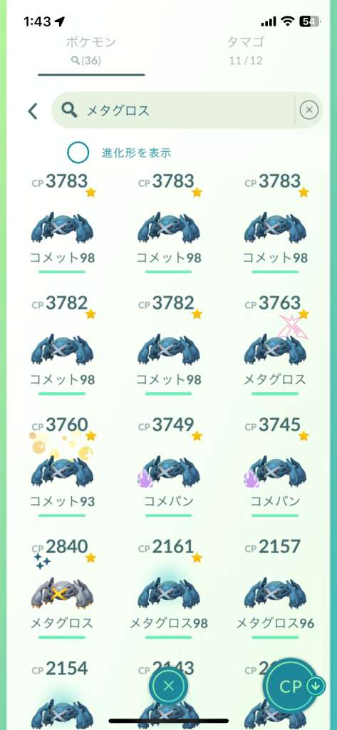 PL50の個体値100近いの6匹か12匹+マスプレ用の攻撃Fシャドウメタグロス、あとPLシャドウメタグロス数匹持たないと古参ではないと思う。