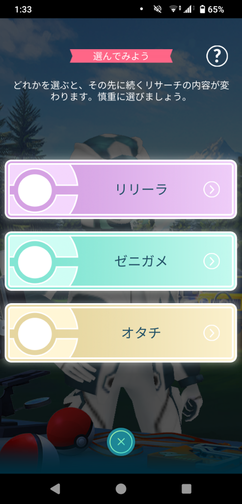 | 選択肢A リリーラ | 選択肢B ゼニガメ | 選択肢C オタチ |
