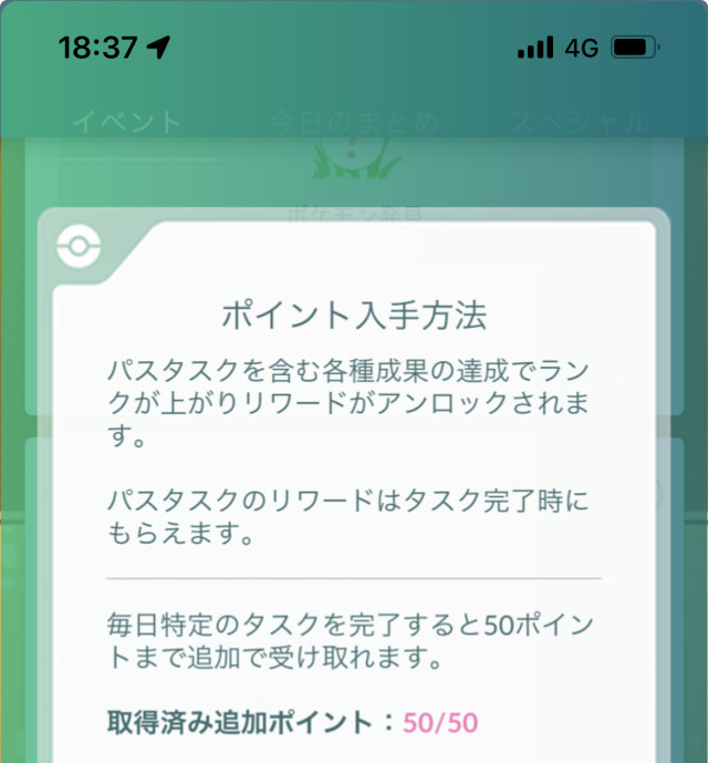 • パスタスクは翌日になってもリセットされないが、タスクのアクションを行うとリセットされ正しくポイントがもらえる