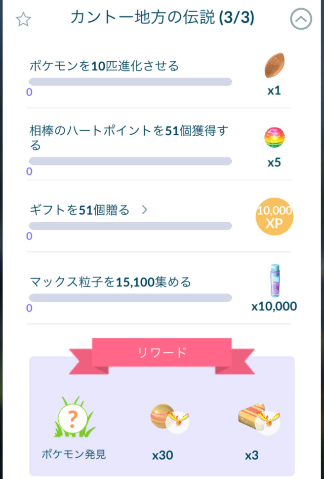 | ポケストップ・ジム5個を回す(カントーセレブレーション) 探索 |