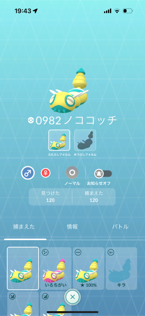 ![]() | ノコッチ色違い 1.33% |