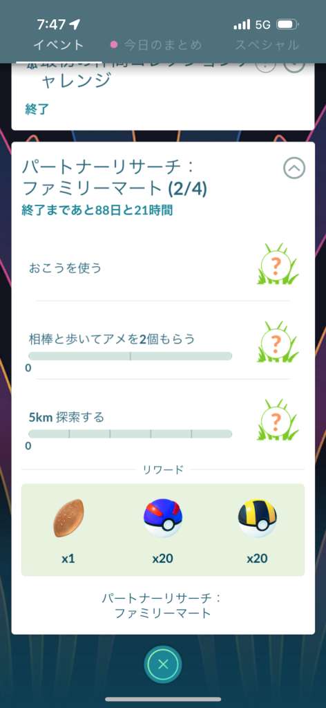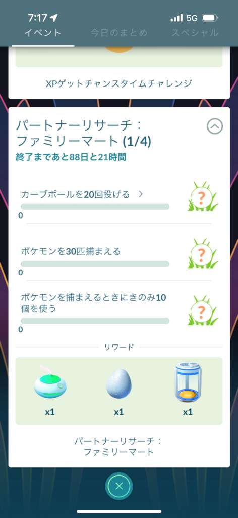 - リサーチタスク、ゲットできる道具とXPは全パートナー共通(ポケモンは異なる)