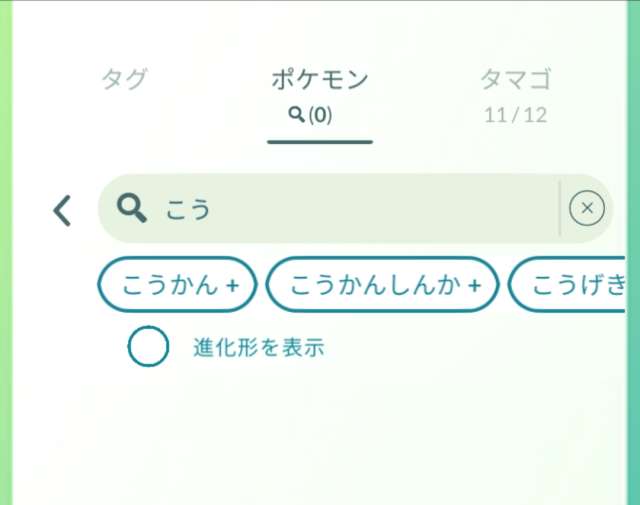 ②ポケモンボックスで検索フィルターの一部を入力すると候補が表示される