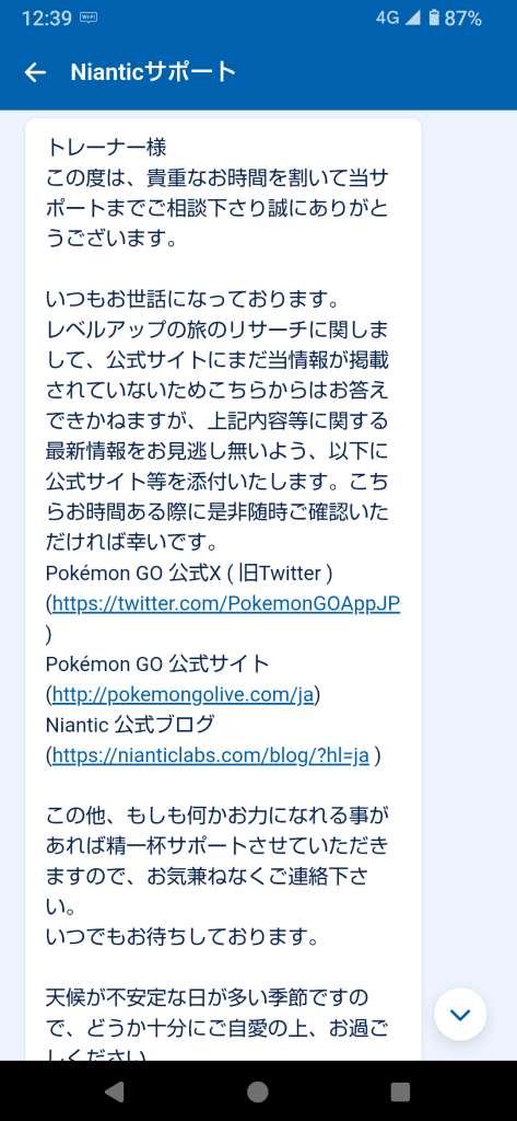 Nianticサポートの回答によると、現在挑戦中のレベル50チャレンジはレベル上限の引き上げに伴い終了となるとのことです。