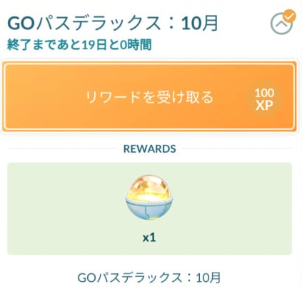 「GOパスデラックス:10月」にアップグレードすると、既存のランク100のリワード「ポケコイン」に加え、「キラチャーム」がリワードとなる無料の「タイムチャレンジ」が配布されます。